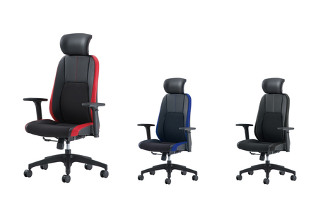 人間工学に基づいて開発したさまざまな姿勢に対応するチェアは、体圧を分散し、長時間座っても快適な座り心地にこだわりました。機能の異なる2種をラインアップ。カラーはレッド、ブルー、ブラックの3色を取りそろえました。