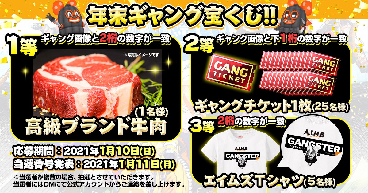 1月11日(月)にAIM$ 公式Twitterで当選ギャングと当選番号を発表します!