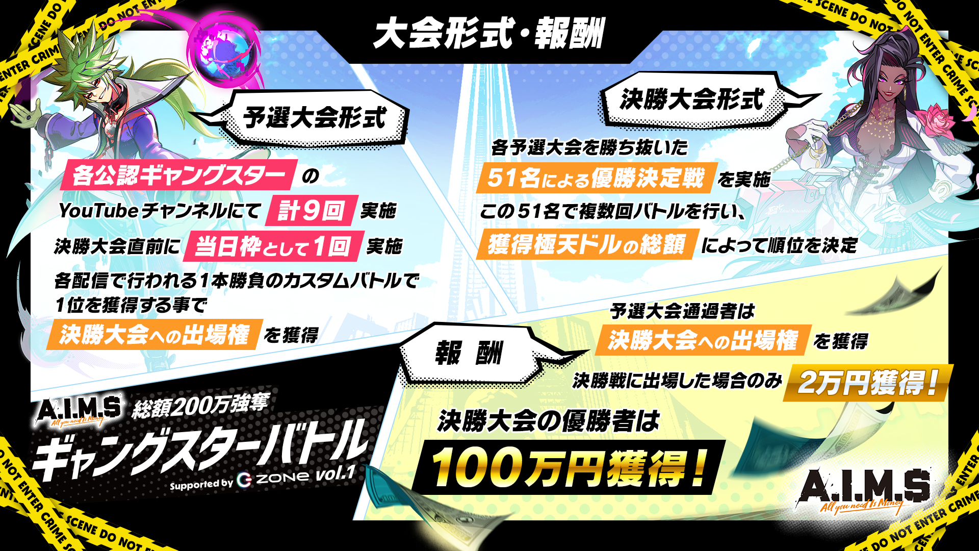 ■A.I.M.$初公式大会「総額200万円強奪ギャングスターバトル」vol.1開催決定