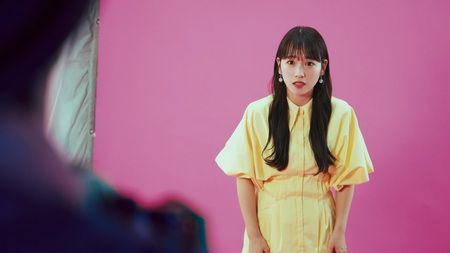 癖の強い演技の応酬で、笑い声が絶えない撮影現場に!ヘアメイクや舞台監督、カメラマンの方々による非常に癖ある演技に対し、川栄さんも強目の反応やアクションを返すことで、一つひとつのシーンに臨場感がもたらされ、強烈な演技の応酬が繰り広げられました。その様子に、川栄さんやスタッフも思わず笑顔が溢れ、笑い声の絶えない撮影現場となりました。