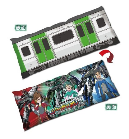 新幹線のクッションのファスナーを開けてひっくり返すと、シンカリオンZと運転士のラウンドクッションに変形。