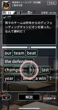 トレーニングでは、一問一答形式だけでなく、選択問題(二択・四択・六択・八択)やパネル並べ替え問題など多様な出題形式で学習ができます。