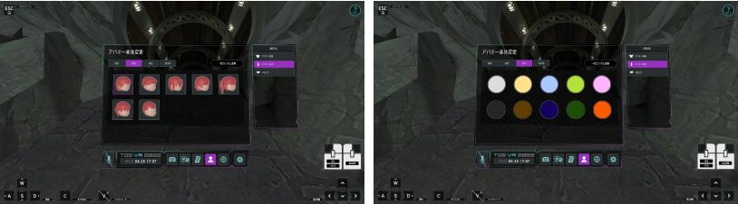 アバター素体は髪型と目の形が各8パターン、髪色と肌の色が各10パターンあり、組み合わせは6400通り。プレイ中もメニューからいつでも組み合わせの変更が可能です。