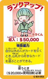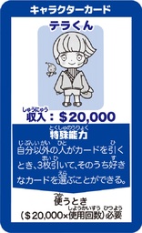 4人の精霊のうちの一人テラくん、ゲーム内で給料日マスに止まると、