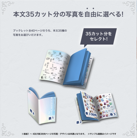 ブックレットは全40ページのうち、35ページをセレクトできる、大ボリューム仕様です。1枚ずつ剥がせる仕様なので、額装などでもお楽しみいただけます。