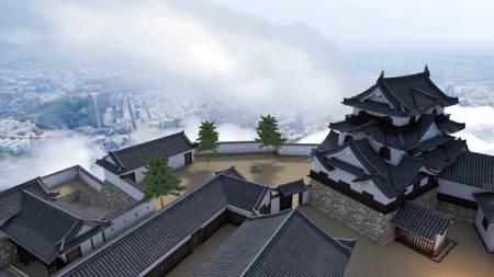 同作品は国宝の天守をはじめとした現存する城域を高精細撮影したデータや、史料となる「彦根城御城内御絵図」を元に、凸版印刷のVR技術を用いて再現したものです。