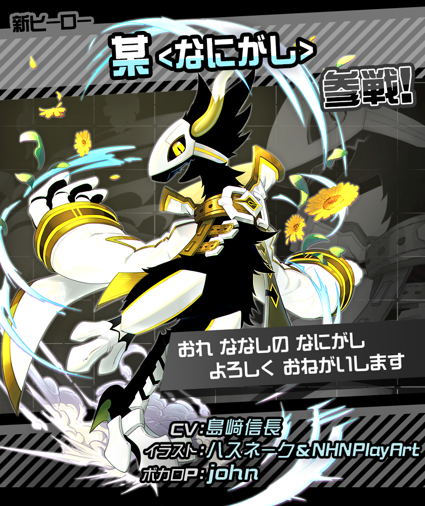 N HN PlayArt 株式会社 (本社:東京都港区、代表取締役社長:丁 佑鎭、以下NHN PlayArt) と株式会社ドワンゴ(本社:東京都中央区、代表取締役社長:夏野 剛、以下ドワンゴ)が提供するiOS/Android向けリアルタイム対戦ゲーム『#コンパス 戦闘摂理解析システム』(以下#コンパス)において、新オリジナルヒーロー「某<なにがし>」を本日7月24日(月)より実装します。
