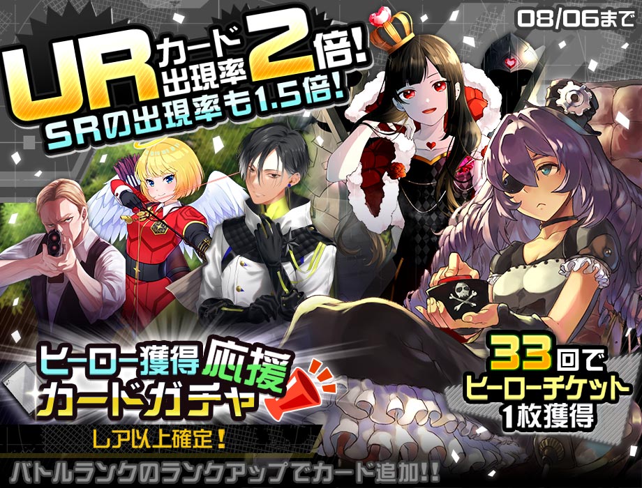 URカード出現率2倍!SRカード出現率1.5倍!33回でヒーローチケット1枚獲得‼