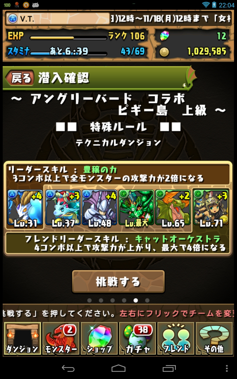 パズドラとアングリーバードのコラボダンジョン「ビギー島」。