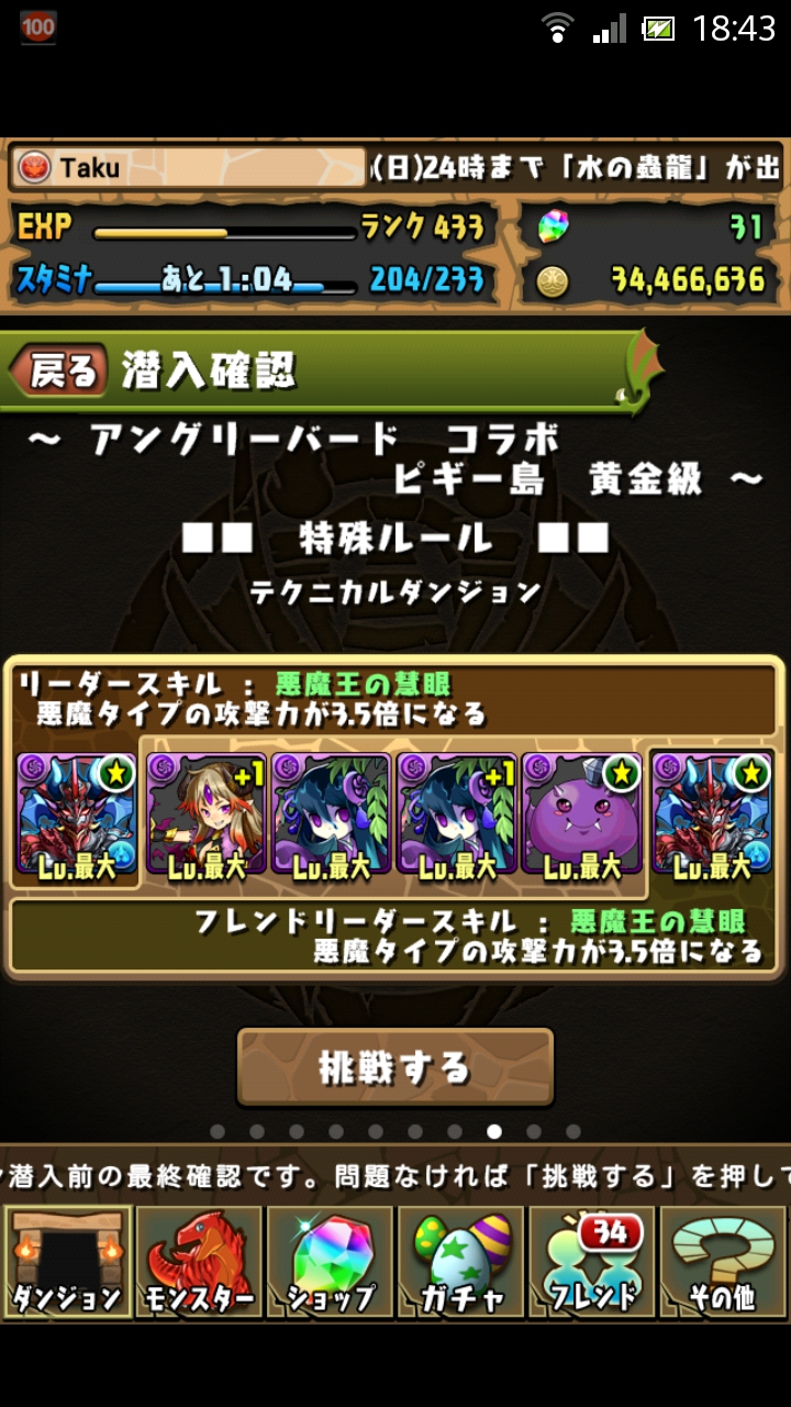 アングリーバードの新たなコラボが開催されたと同時に、1年前に開催されたアングリーバードコラボも復活しています。まだスコア機能が実装される前でしたので、今回はこのダンジョンでSランクを狙いたいと思います。