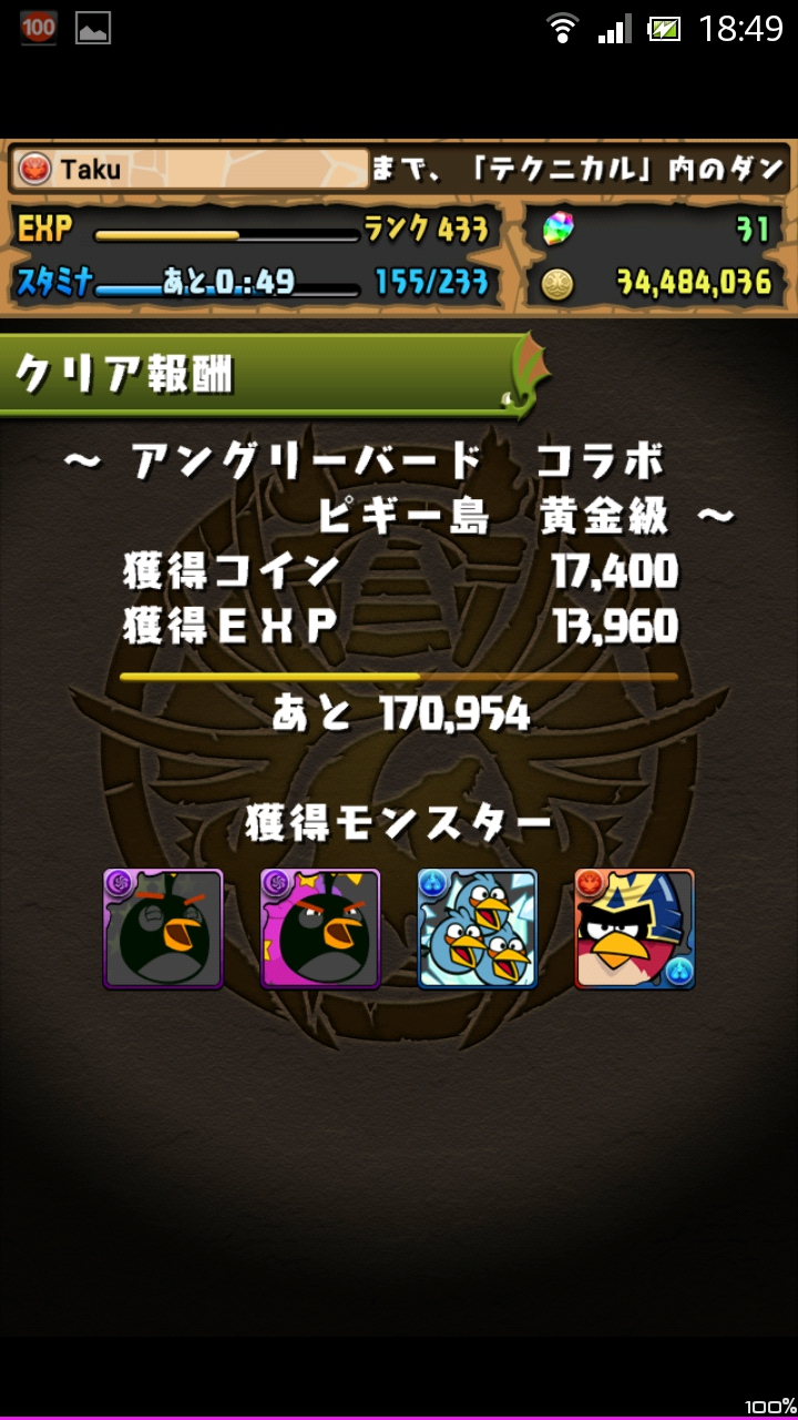 【パズドラ】アングリーバードコラボ ピギー島 黄金級 Sランク ノーコン攻略(無課金編成)