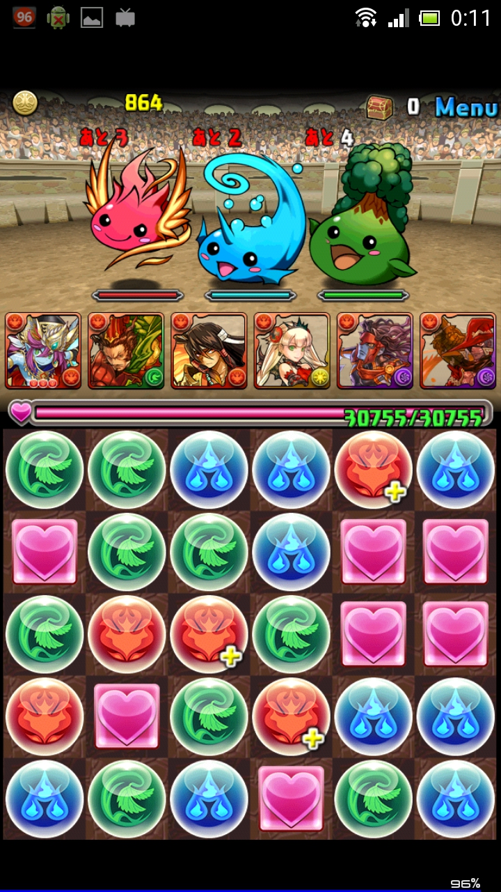 今回の3色ダンジョンは火・水・木となっています。御三家の色なので、初心者もやりやすいですね。