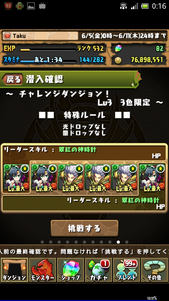 今回は6月12日(金)より実施されている第15回チャレンジダンジョンに挑戦していきたいと思います。今回も全てのレベルにチャレンジしていきたいと思っているので、よろしくお願いします!