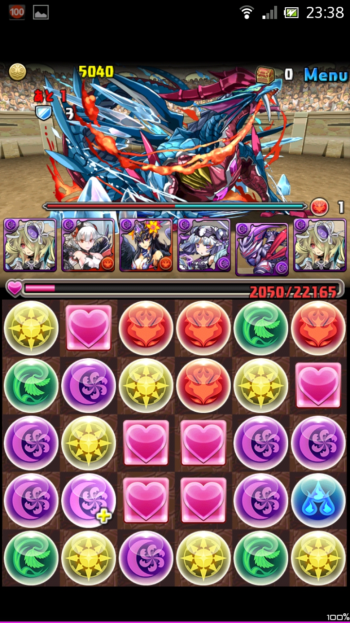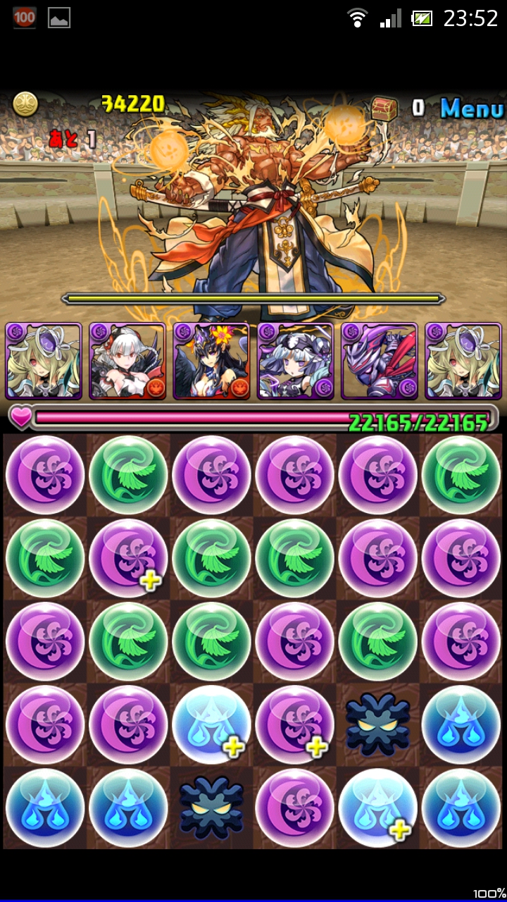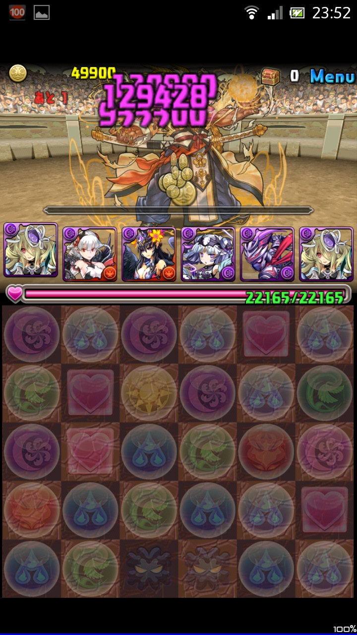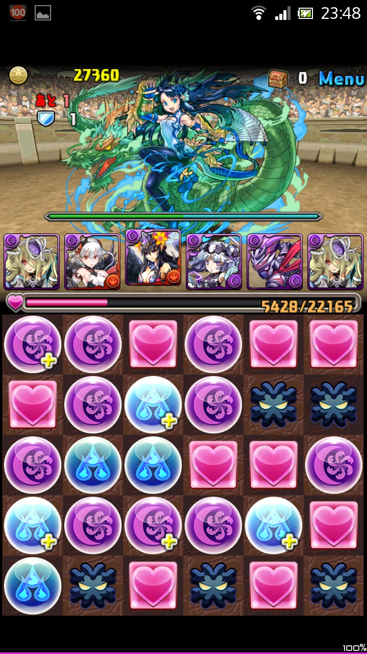 ランダム1色を回復をしてくれるので、その回復をヴァルの変換で闇に変えてしまうのです。これで安定して闇を盤面に増やせます。あとは列16倍を決めて突破。