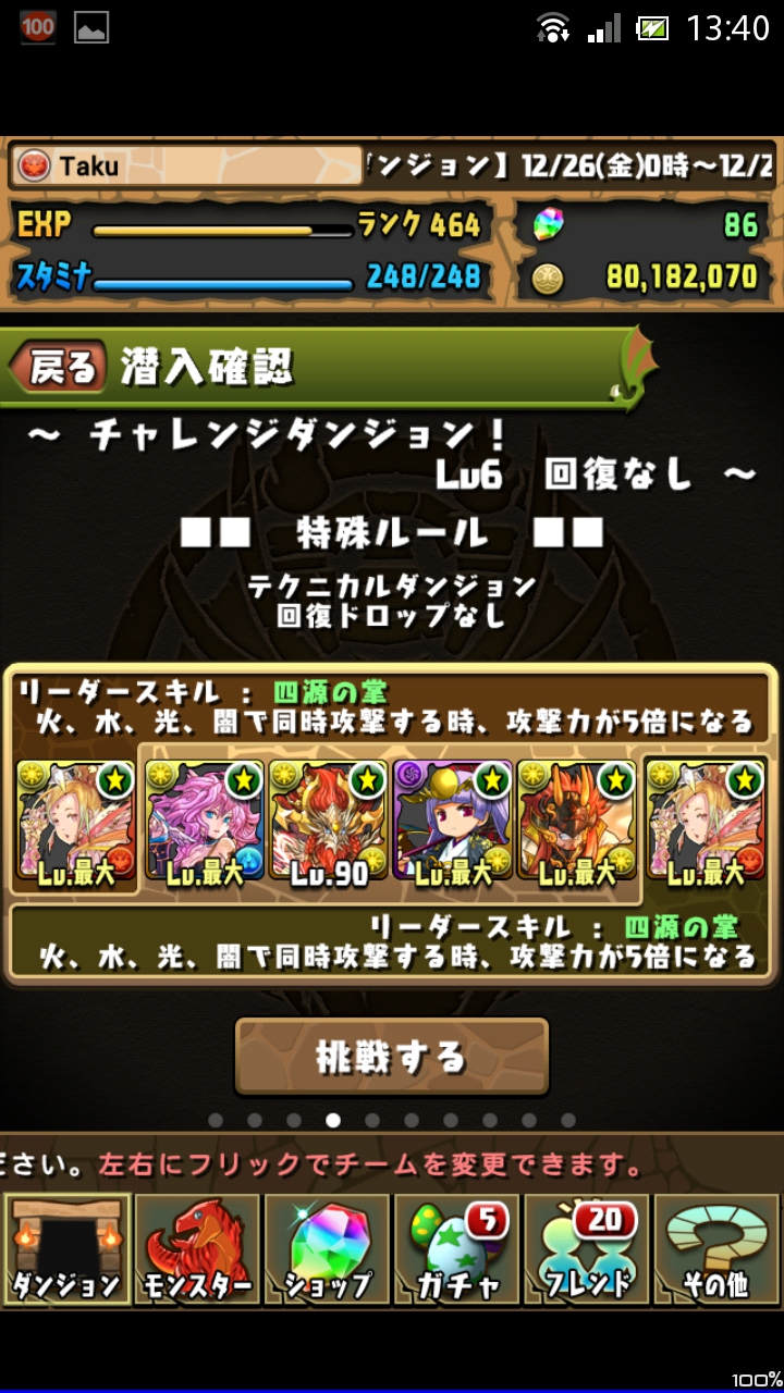 今回は、12月26日から開催されている「第4回チャレンジダンジョン」のレベル6に挑戦したいと思います。そろそろ難易度が上がってきて、しっかりとダンジョンごとに対策をしないといけなくなってきました。