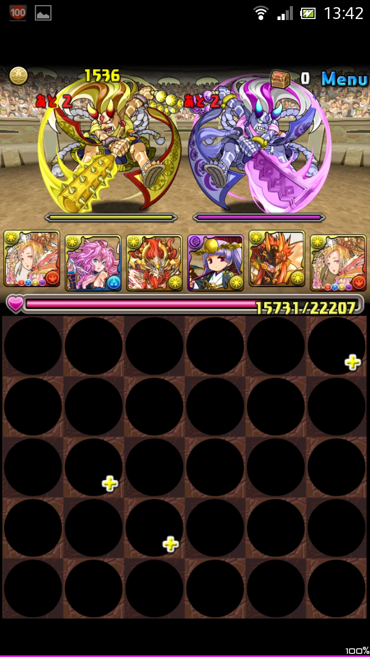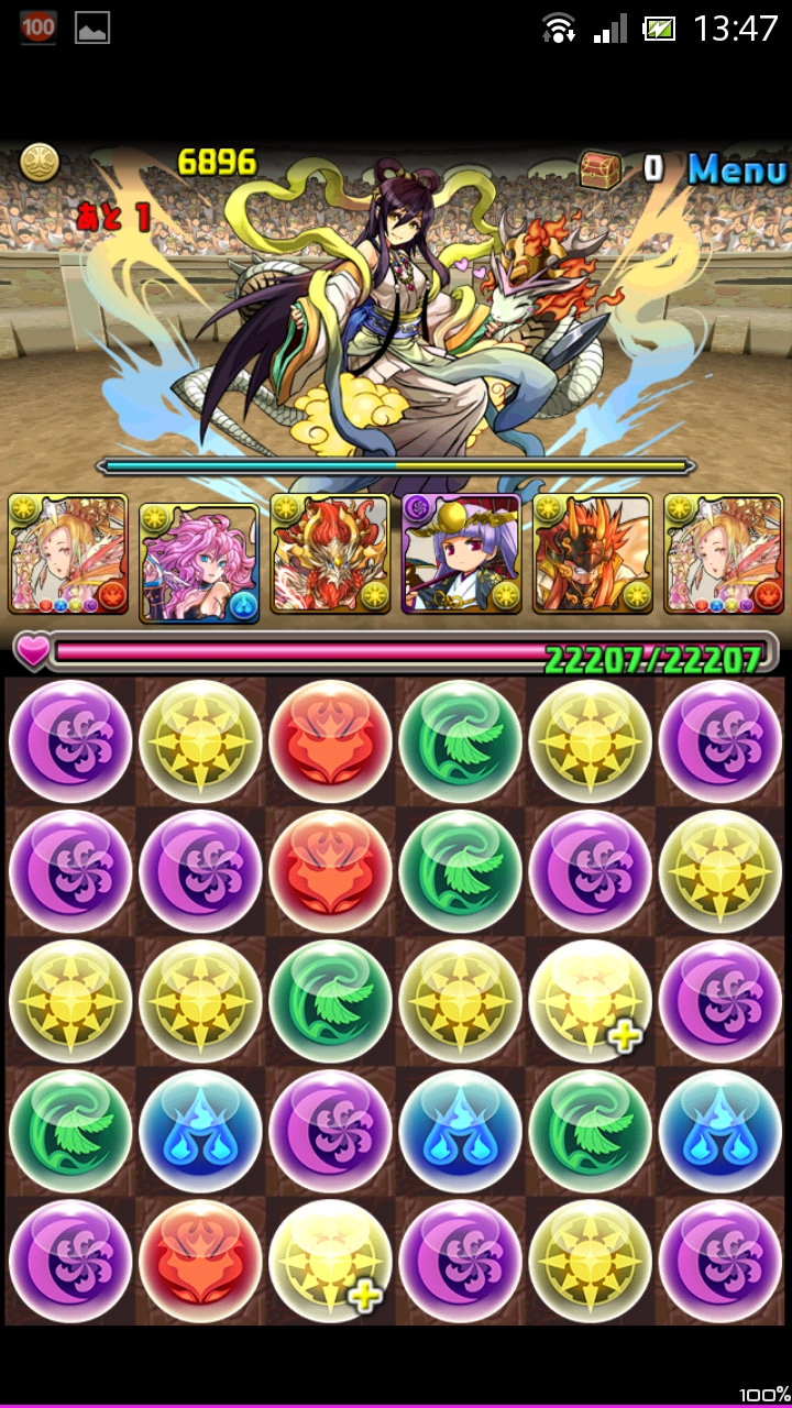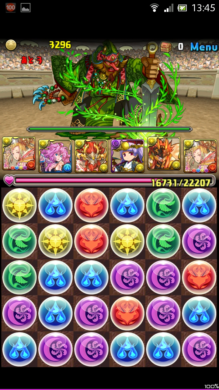 回復なしダンジョンのため、あまり攻撃を食らいたくありません。なので盤面整理をするのは最低でも1回ほどに抑えたい所。初回で盤面の暗闇を消しつつ、木ドロップを消しておくといいでしょう。