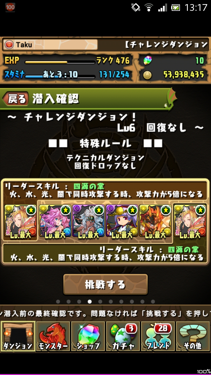 今回は、1月12日に実施された第5回チャレンジダンジョンのレベル6に挑戦していきたいと思います。