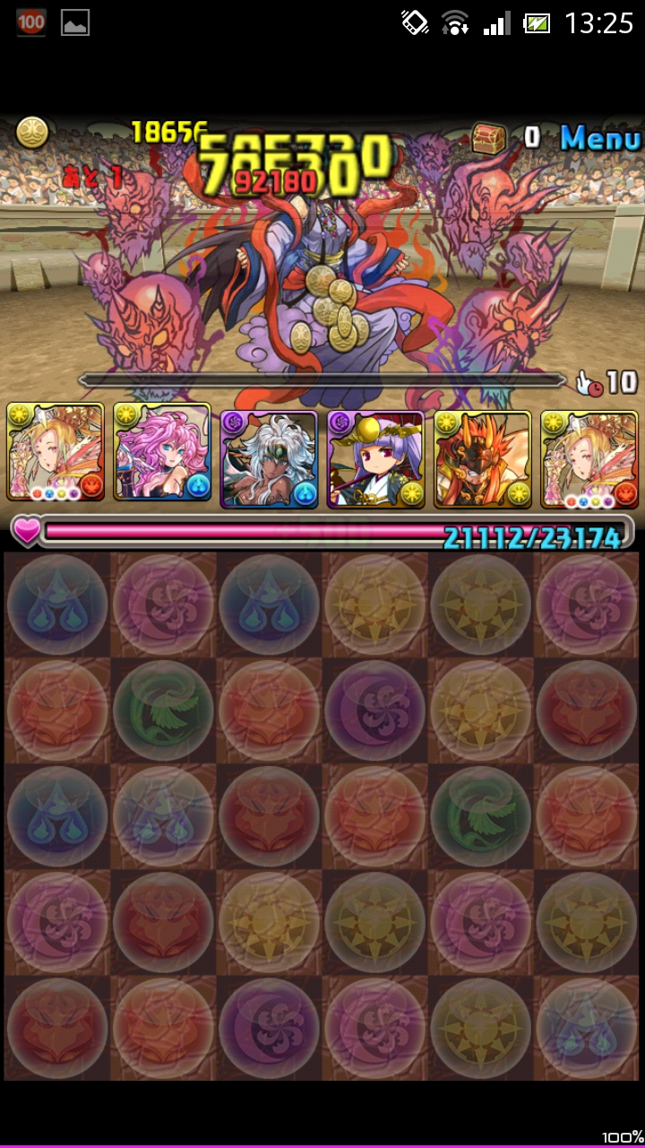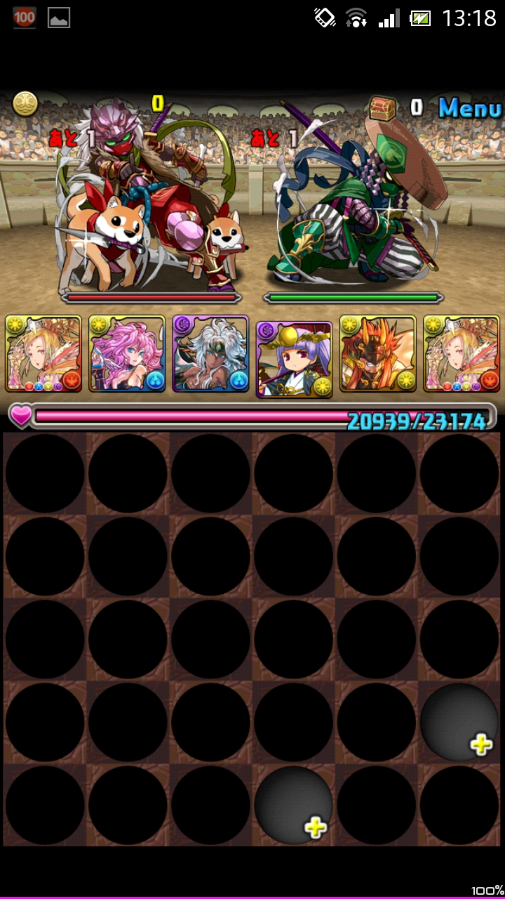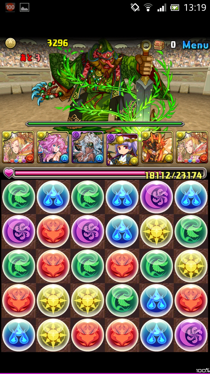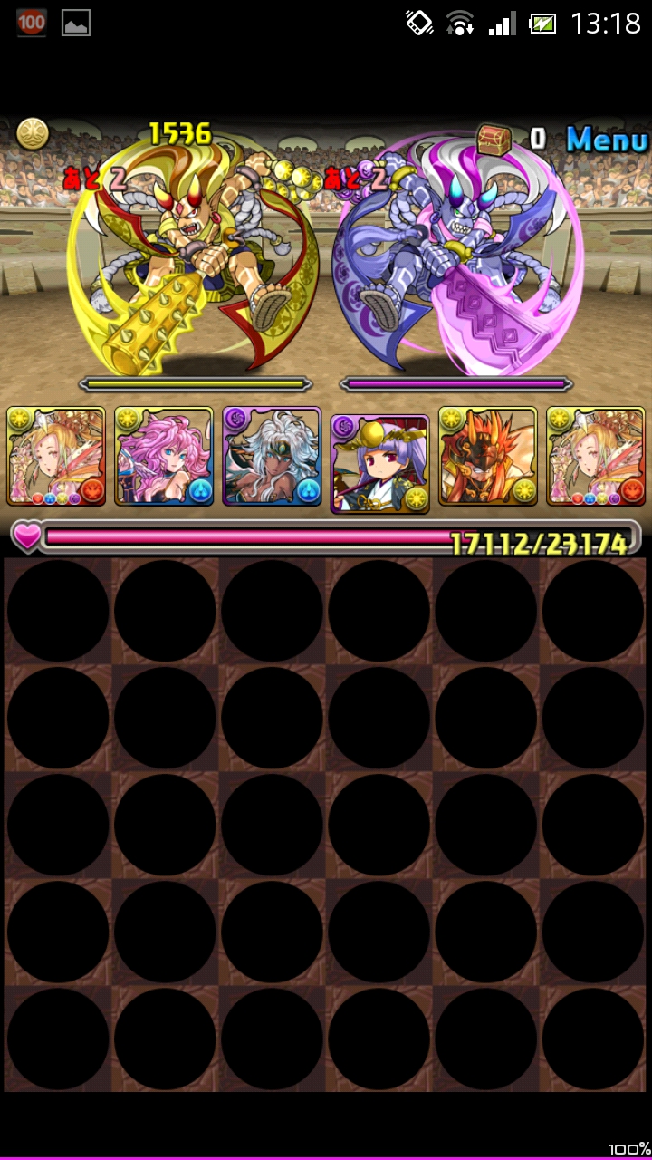先制攻撃ありなので2体とも2ターン出現確定。なのでまず落ちついて暗闇を消すのに専念しましょう。ついでに不要な木ドロップを消しておくと次のターンが楽になります。