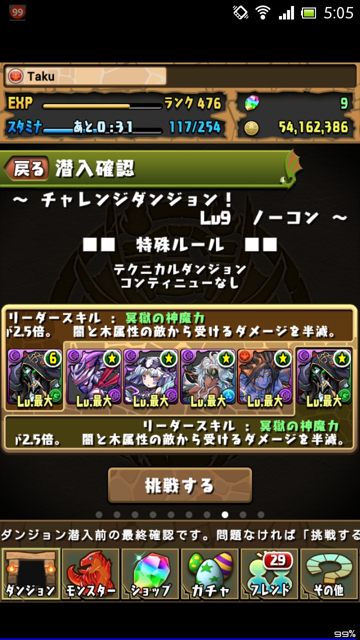 今回は、1月12日より実施された第5回チャレンジダンジョンのレベル9に挑戦したいと思います。