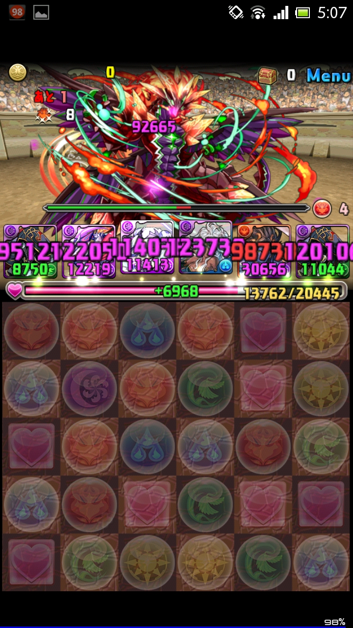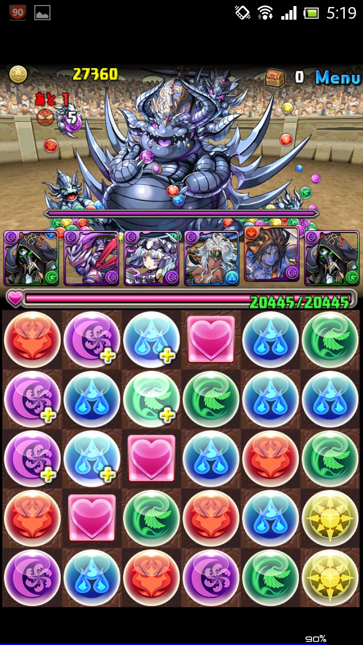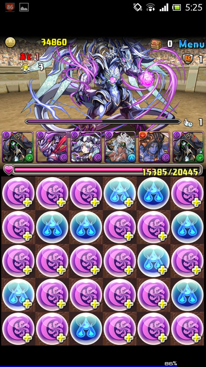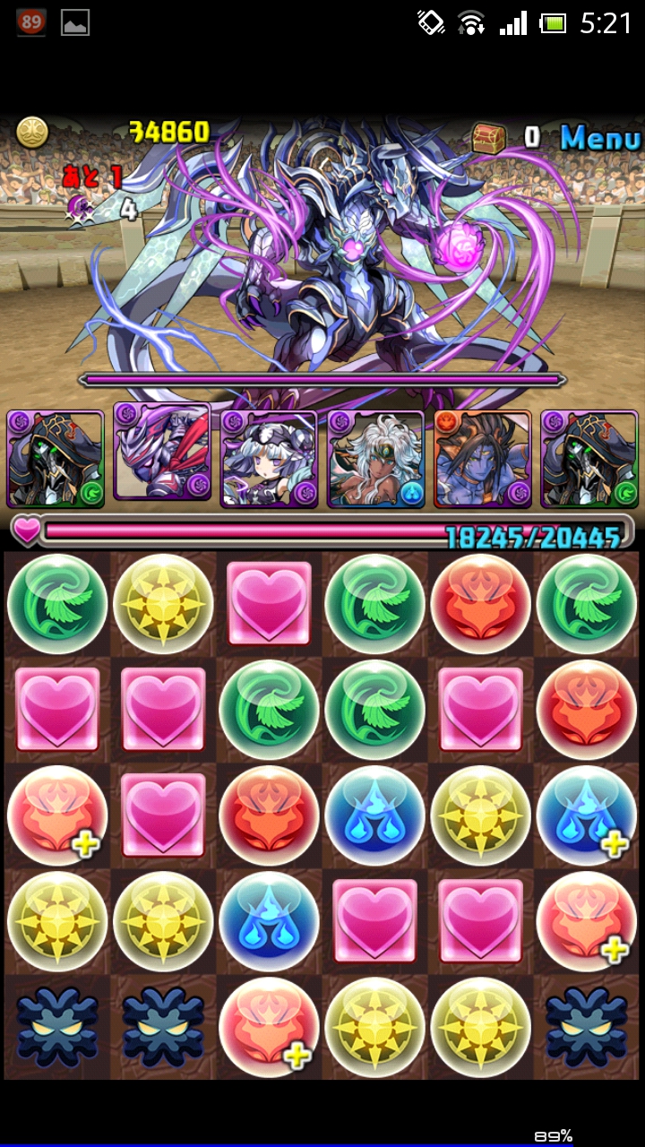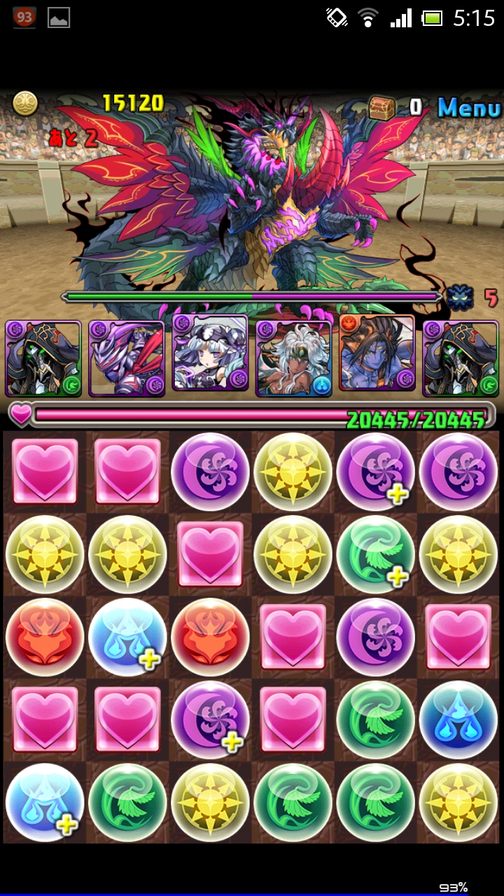 そこからはひたすらスキルを貯めてください。スキル貯め中に倒してしまわないよう注意。闇が増えてきたら列を組まないように適当に1コンボで消しましょう。