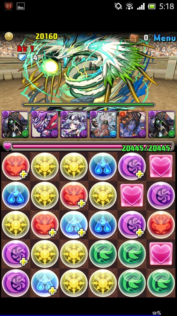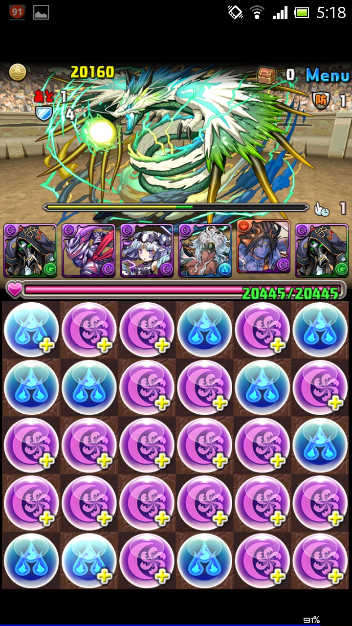 4階、サイクロンデビルドラゴン。HP約189万程度、2ターン攻撃で通常25,444ダメージです。先制で光属性4ターンバインド。光属性がいない場合は5ターンの間お邪魔ドロップが落ちやすくなります。