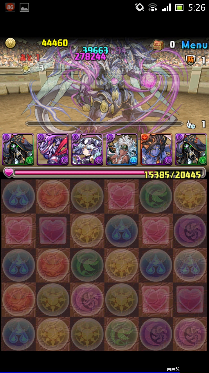 7階、ボスのゼローグです。本来なら超鬼門の鬼畜ボスですが、覚醒ハーデスのおかげで攻撃力を4分の1に出来るので、楽勝すぎて気が抜けてしまうレベル。