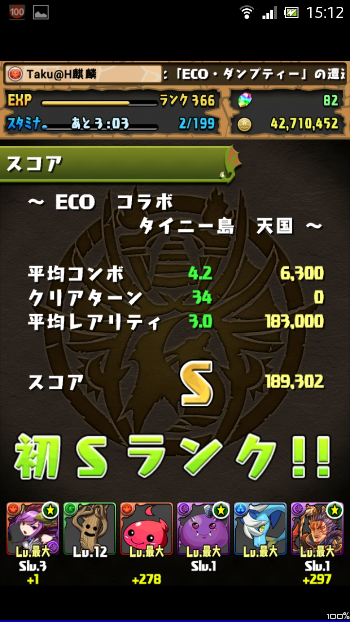 このパーティの平均レアリティは3になります。これはクリアをするだけで18万点以上もらえる計算になります。つまり、このパーティでクリアさえしてしまえばECOコラボはSランク確定となります。