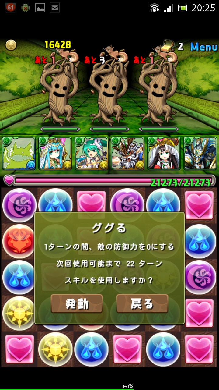 しかし木ドロップなしのため、副属性や木ドロップに変換しなければ攻撃できません。さらに高防御力、高攻撃力な敵もいるので案外侮れません。