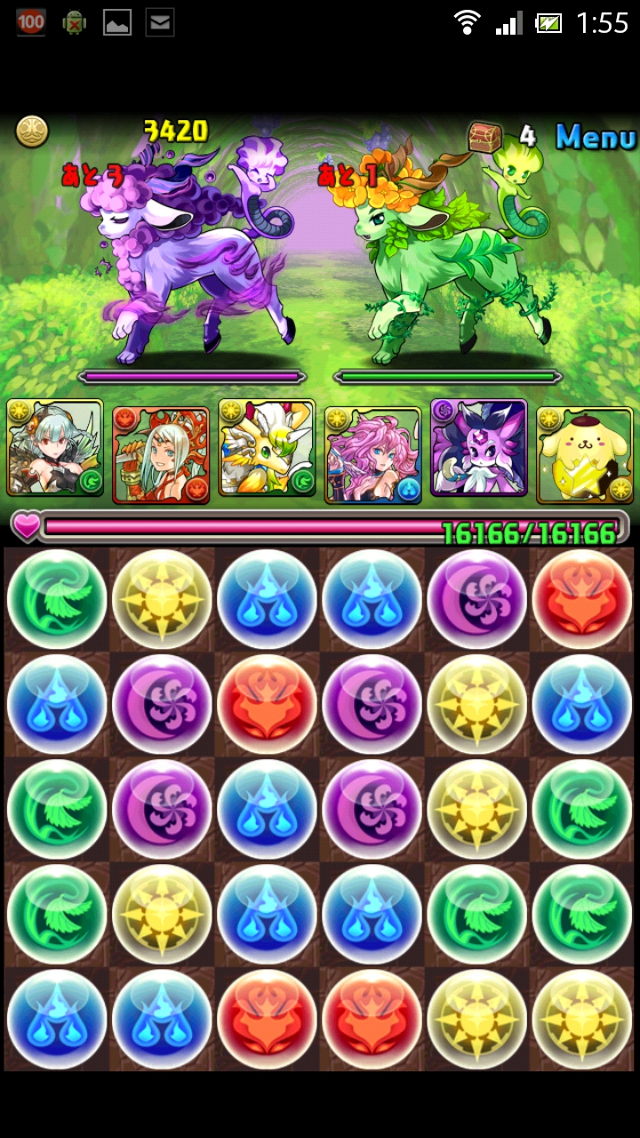 今回挑むパーティはこちら。ヴァルキリー、プリンの回復パです。白メタが入ってるというツッコミが入りそうですが、単純に回復タイプということで入れているだけで、他に持っていなかっただけです。