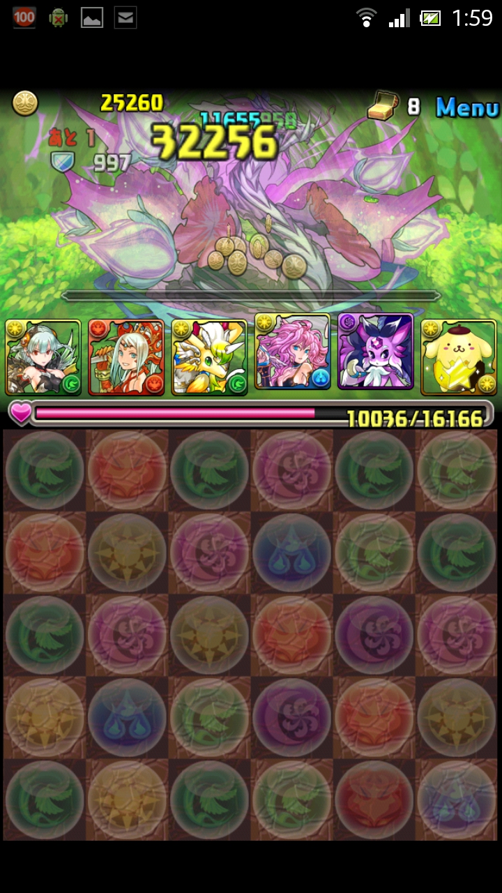 すると次のターンに、先ほどの毒ドロップが回復ドロップに変わります。スクショを見てもらえば分かると思いますが、6つの回復ドロップがありますね。これは毒が回復に変わっただけです。
