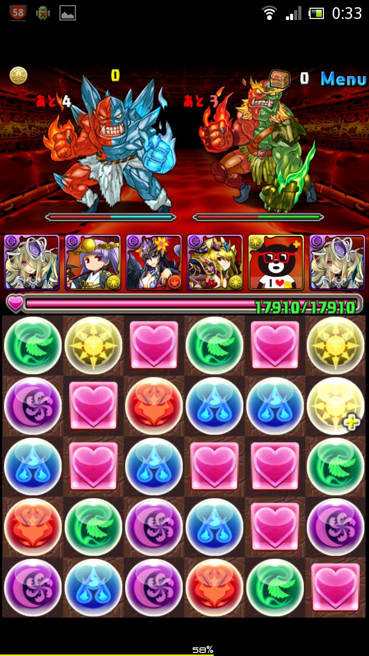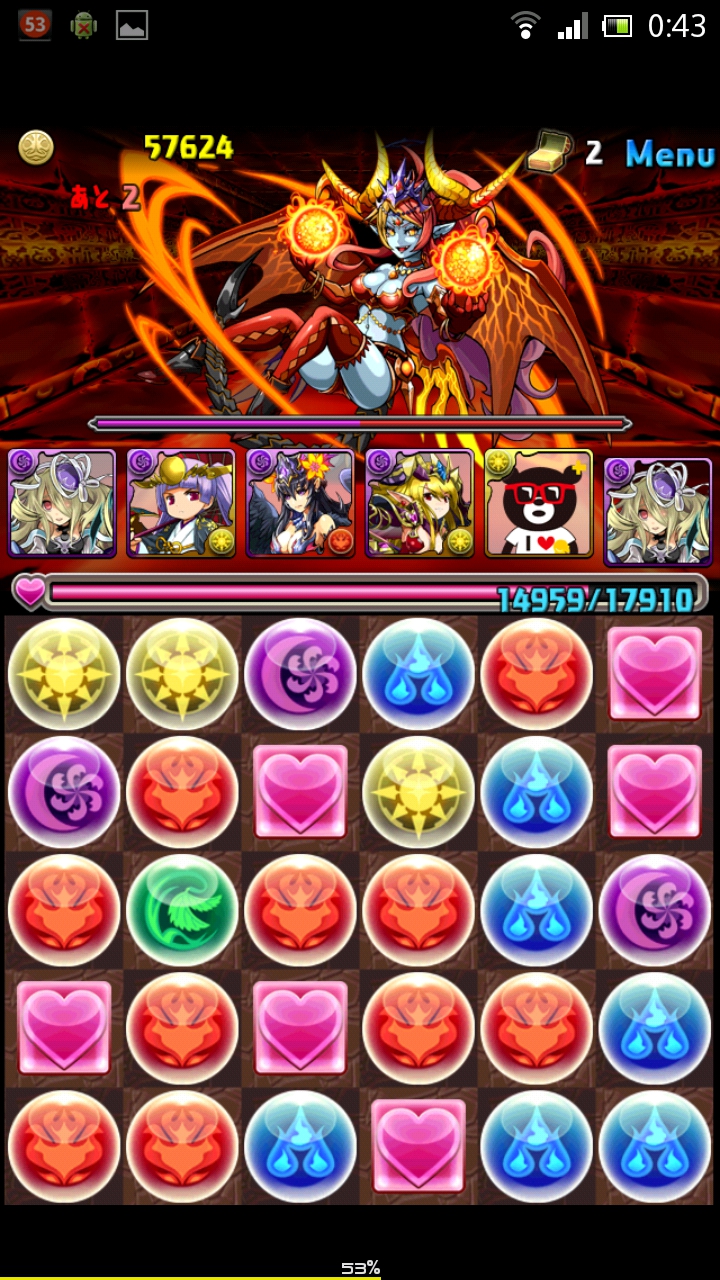 HPが60万ほどですが、弱点で押せるのでまったく問題なしです。リリスのスキルが貯まり次第、1列6個消し+数コンボで余裕でしょう。