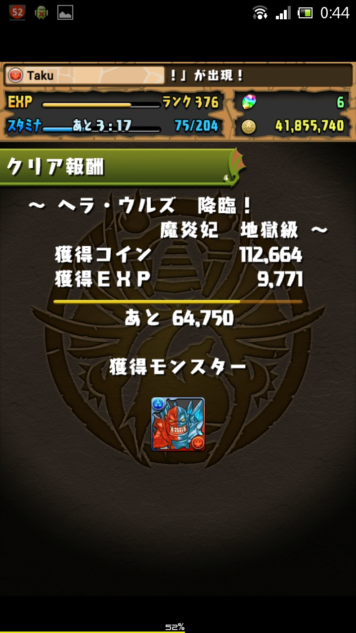 5階、ボスのヘラウルズ。初回ターンに状態異常無効。地獄級でも強いですが、ワンパンしてしまえば何の問題もありません。
