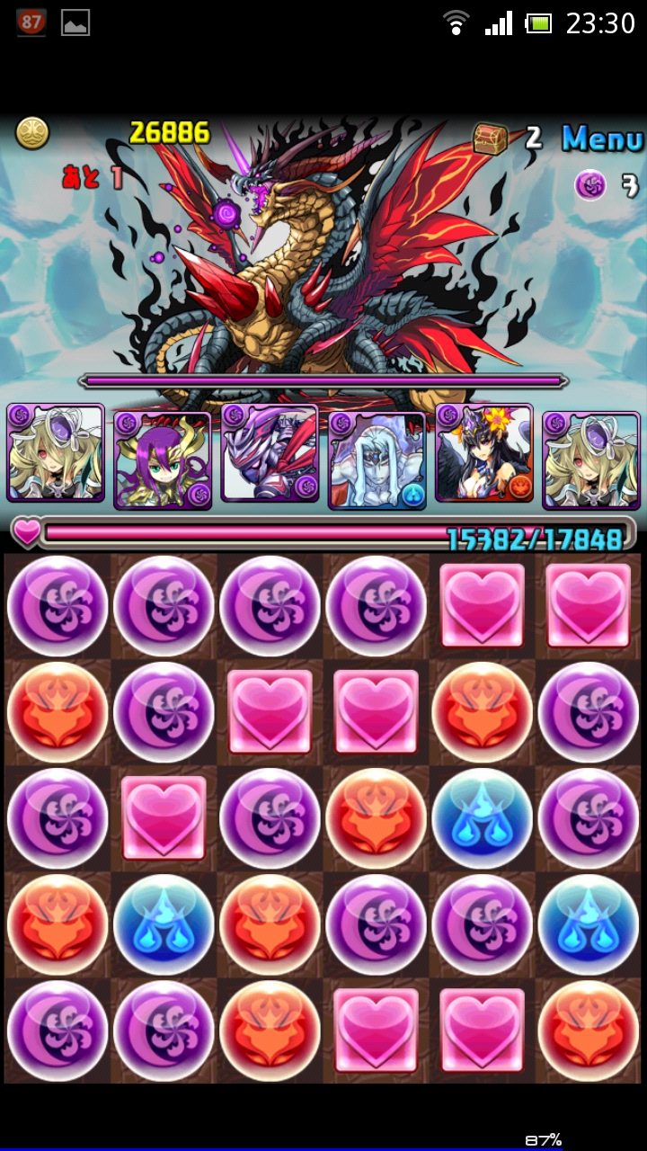 ある程度スキルを貯めたら変換を使用し、1列消し16倍を発動させ、倒すのみです。