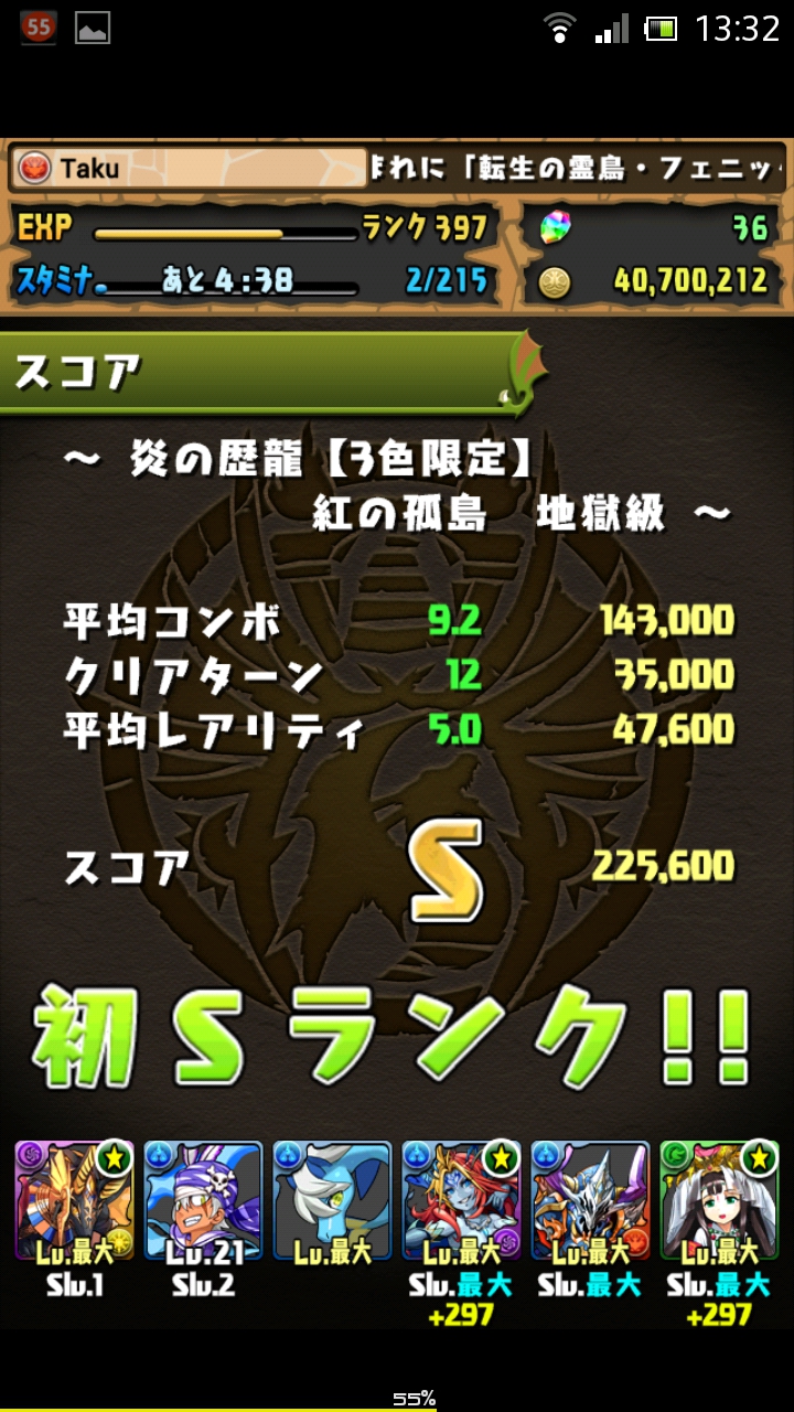 ということで無事にクリアです。歴龍のSランクは結構ボーダーが高くレアリティを少し下げないと、落ちコンがのらない場合Aランクになることも。なのである程度レアリティを下げておくと、保険になります。