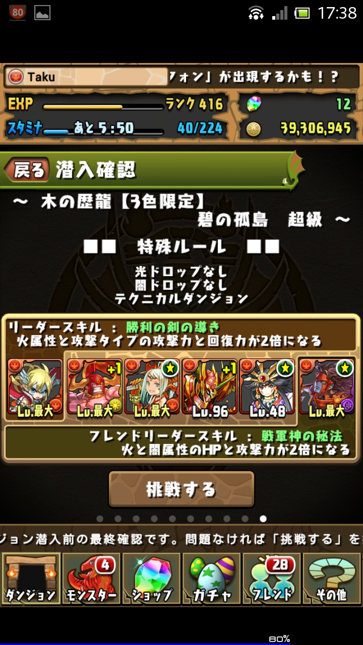 今回は木の歴龍の超級を、火の242パーティでクリアしたいと思います。筆者はフレイを使っておりますが、最初の御三家のティラを究極進化させると同じリーダースキルを所持しているので代用可能。