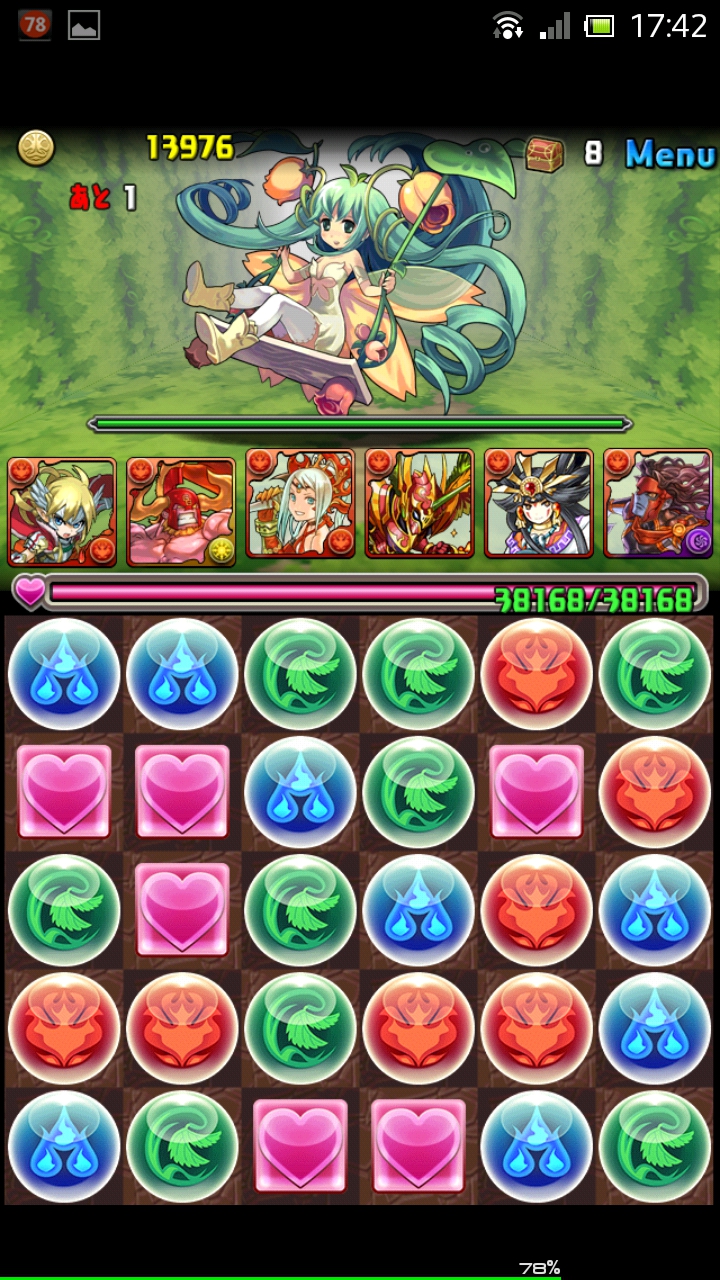 9階、アルラウネです。地獄級では水属性のセイレーンというかなりいやらしい敵が出現しますが、ここは木属性です。なので安心して火で攻めていきましょう。