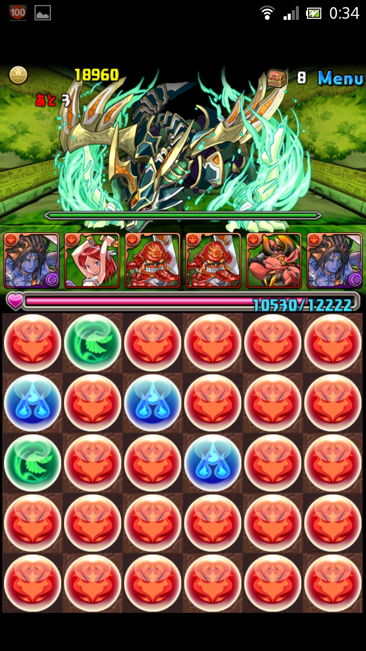 5階、キマイラ戦です。1ターンで出てくることもありますので、最悪の場合を想定して必ず回復ドロップを貯めておきましょう。そしてゴブリンの攻撃態勢・火を使用。