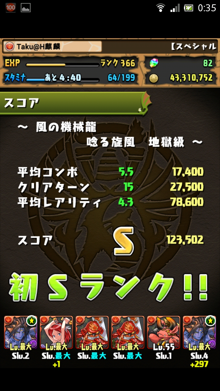 そしてSランクもゲット。平均レアリティだけでは少し厳しいので、道中のコンボやクリアターンの意識も必要でしょう。