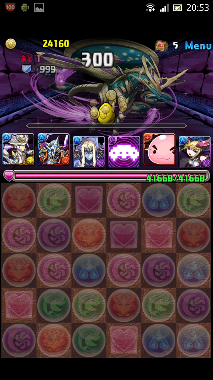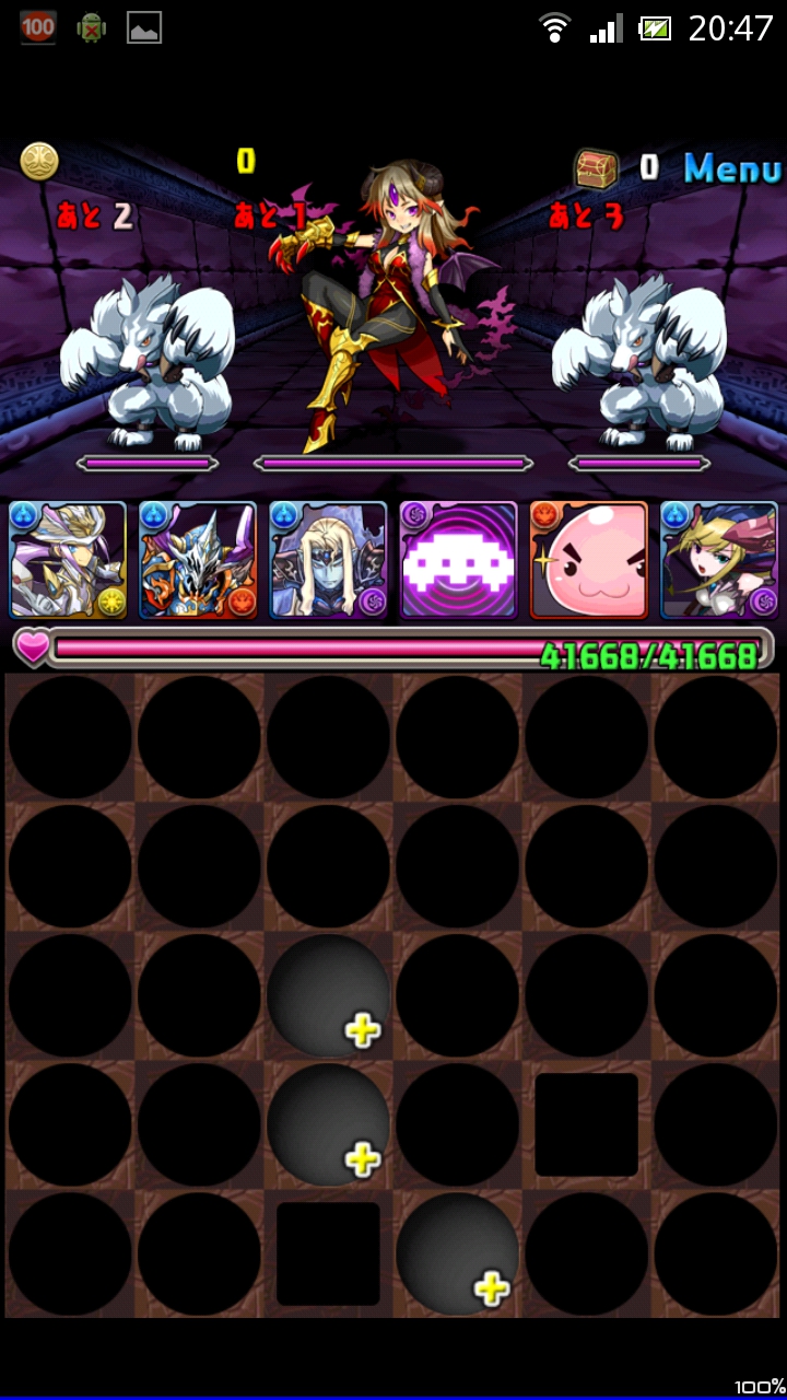 パーティはこちら。基本的な242パの変則パージョンです。242パーティ(HP2倍、攻撃4倍、回復2倍のパーティのこと)で、いずれも地獄級は安定します。