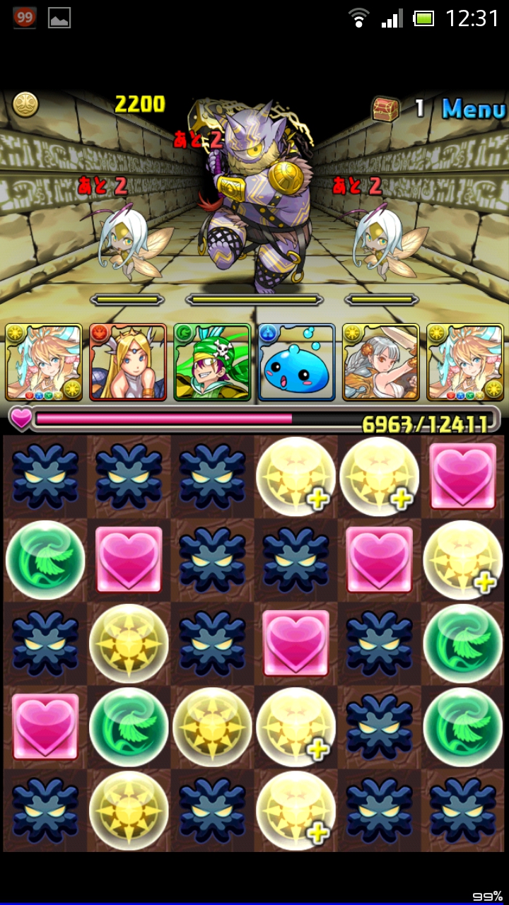 2階と5階はサイクロプスとピクシー2体出現。先制でお邪魔ドロップを作ってくるので、最初のターンはそれを全て消すことに専念して下さい。