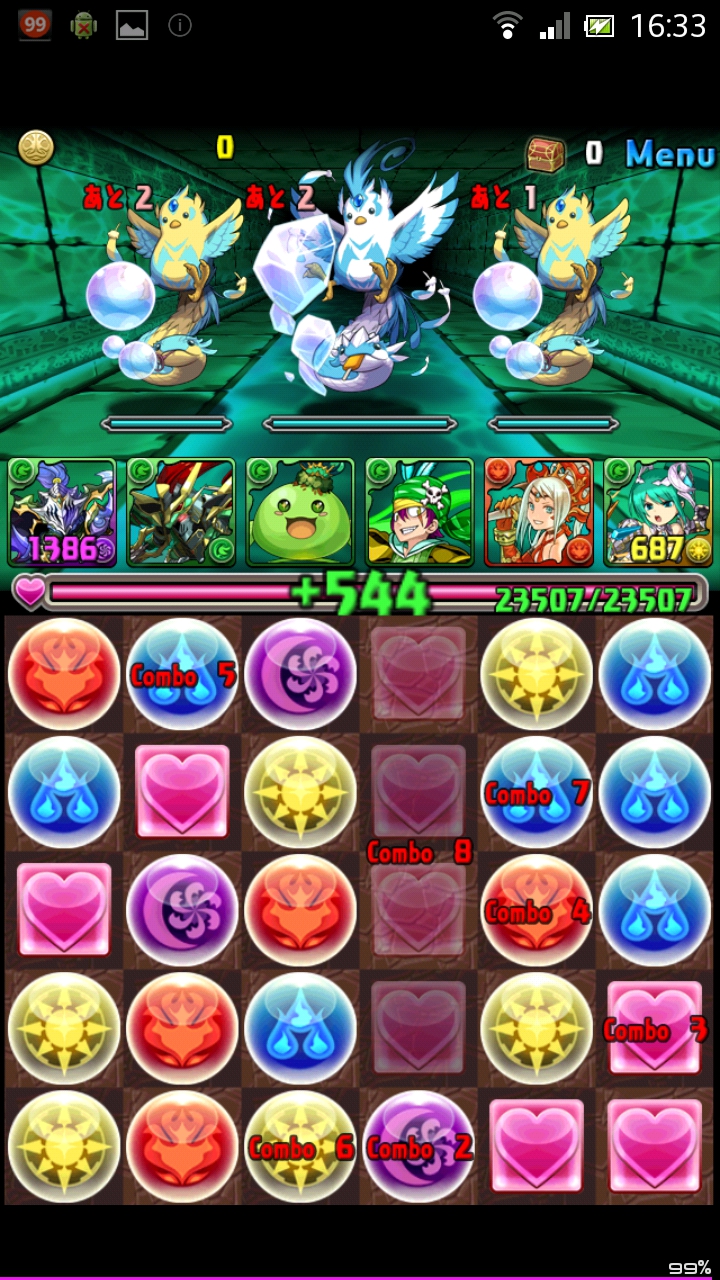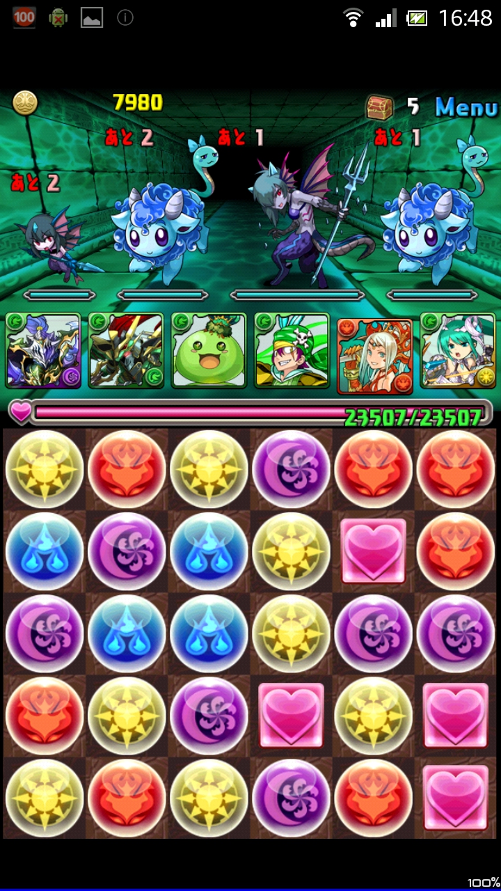 1階と5階はコカトリス3体。真ん中のコカトリスはHP20万程度なので注意。基本的には耐久しながら、変換が貯まったら変換を使用して突破するというのがこのパーティの戦い方です。なのでクーフーリン、エンドラはスキルマ推奨。