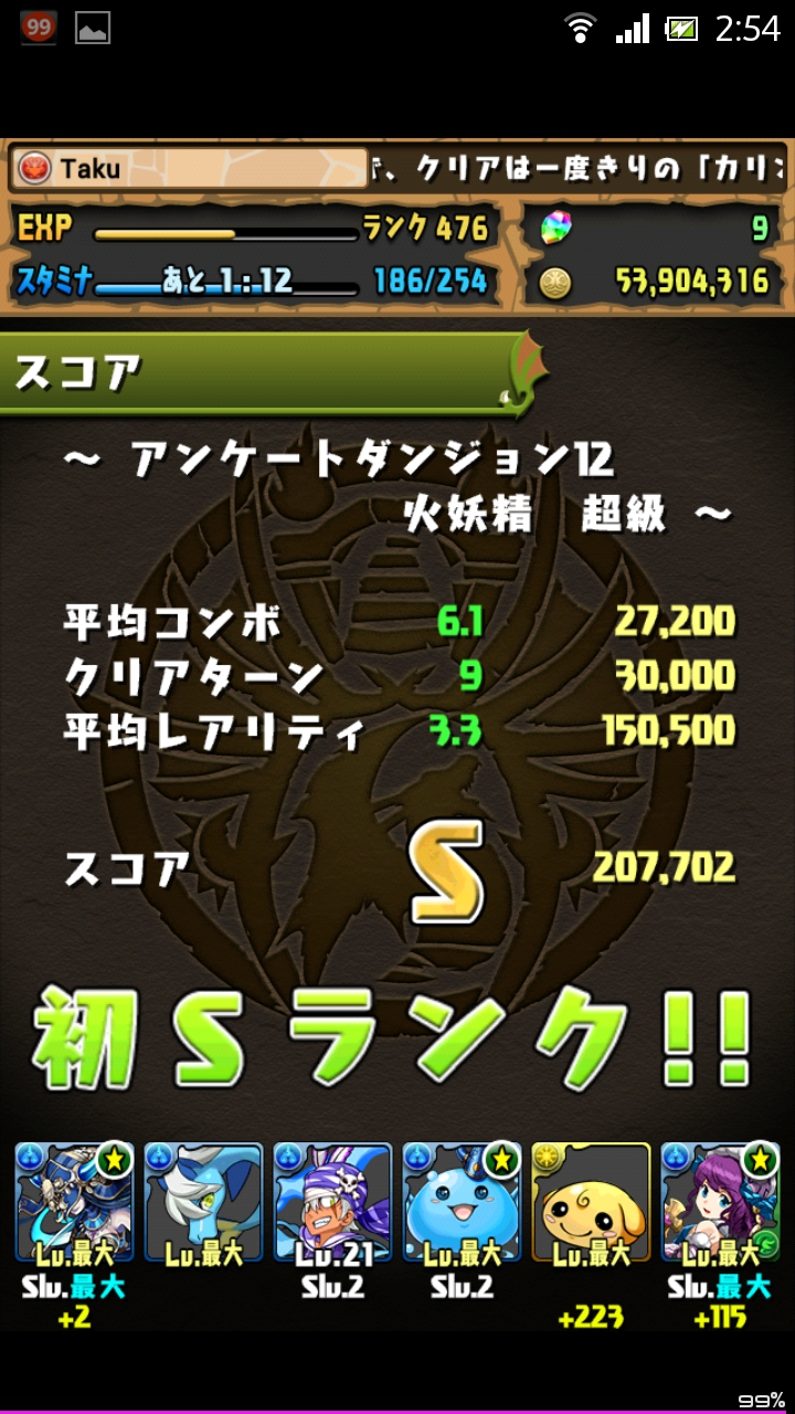 無事にクリアです。今回のアンケダンジョンのSランクボーダーラインは、どうやら15万点ほどのようです。なので、この編成が出来ればレアリティだけでSランク確定ですね。