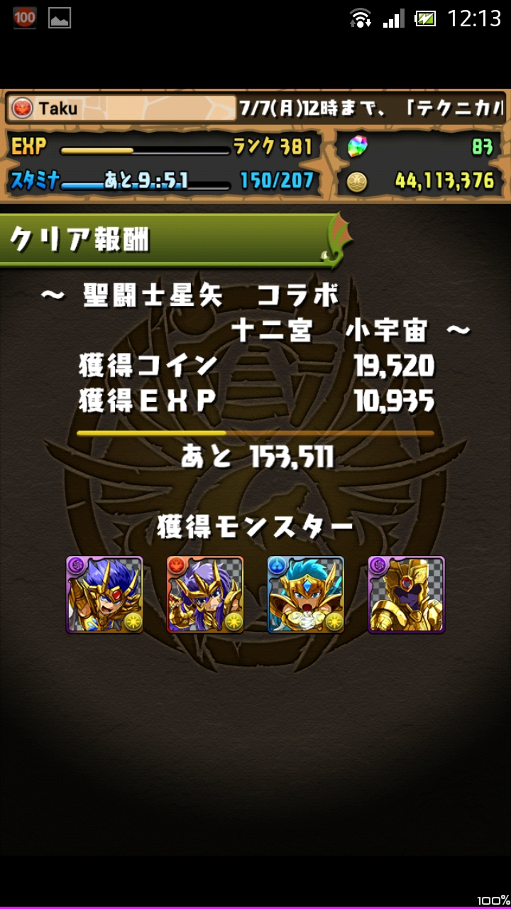 聖闘士星矢コラボ 小宇宙 安定周回PT