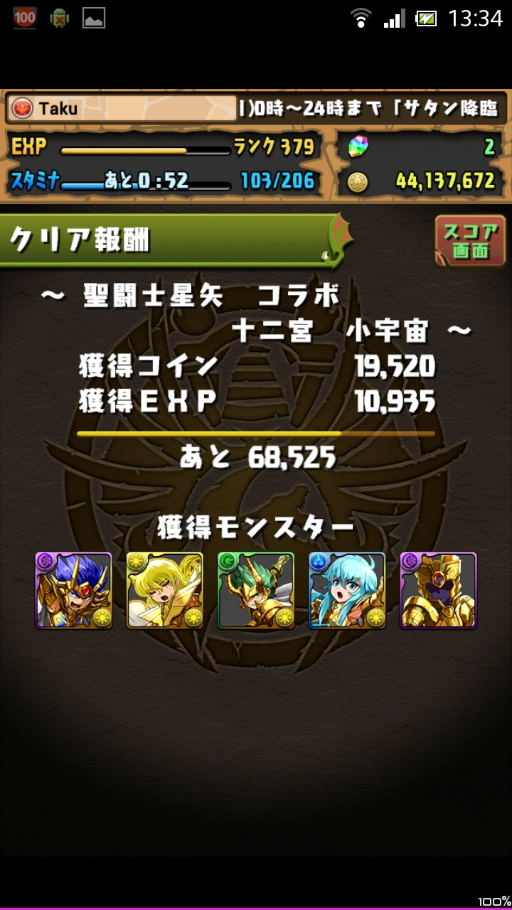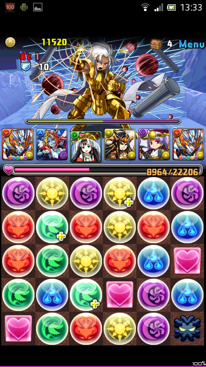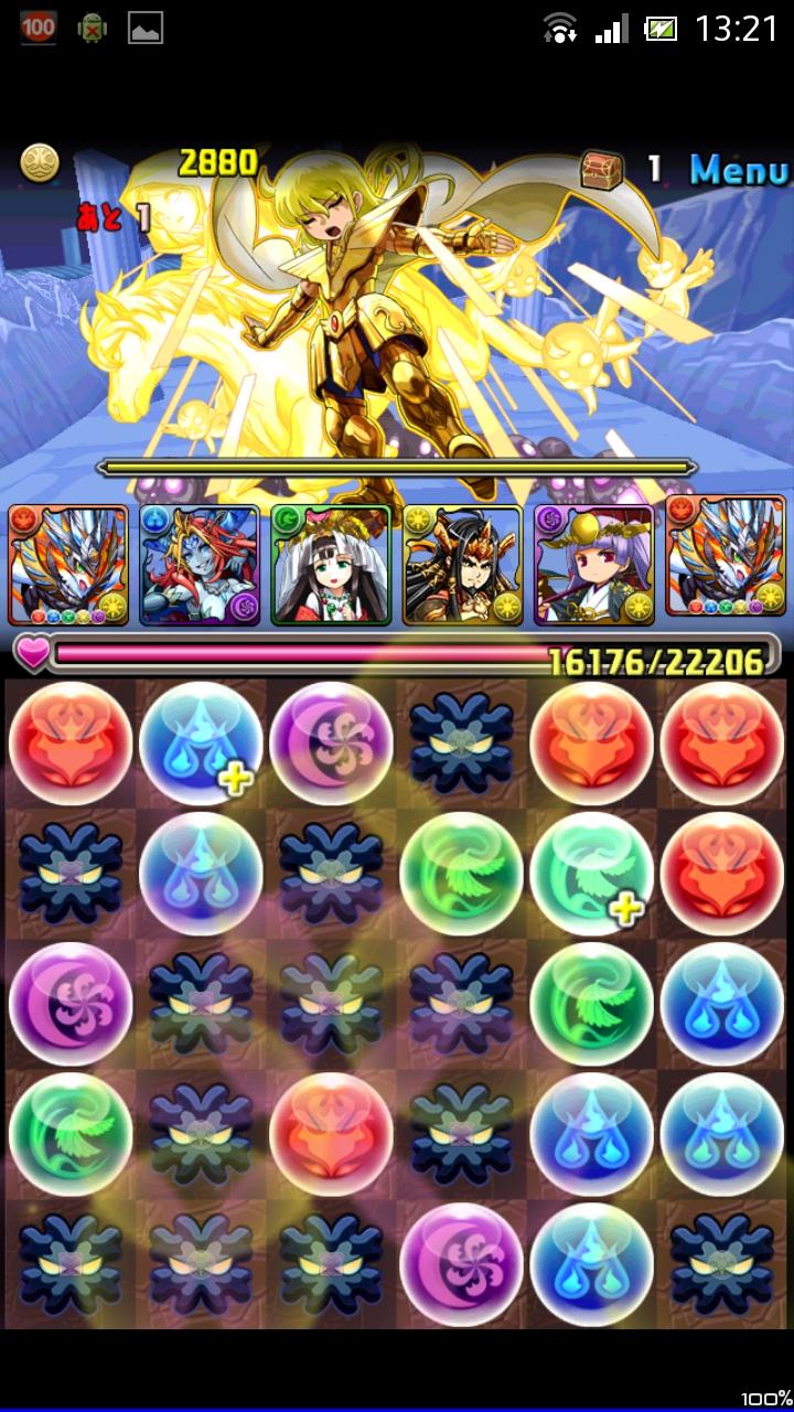 1階はアルデバランorデスマスク。今回はデスマスクでした。どちらが出現しても先制で3ターンの間ドロップ移動時間が1秒短縮されます。