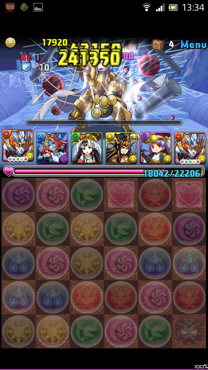シャカの場合、先制でドロップを2色お邪魔に変えてきます。多色パには厳しい場面が続きますね。回復して耐えてきましょう。