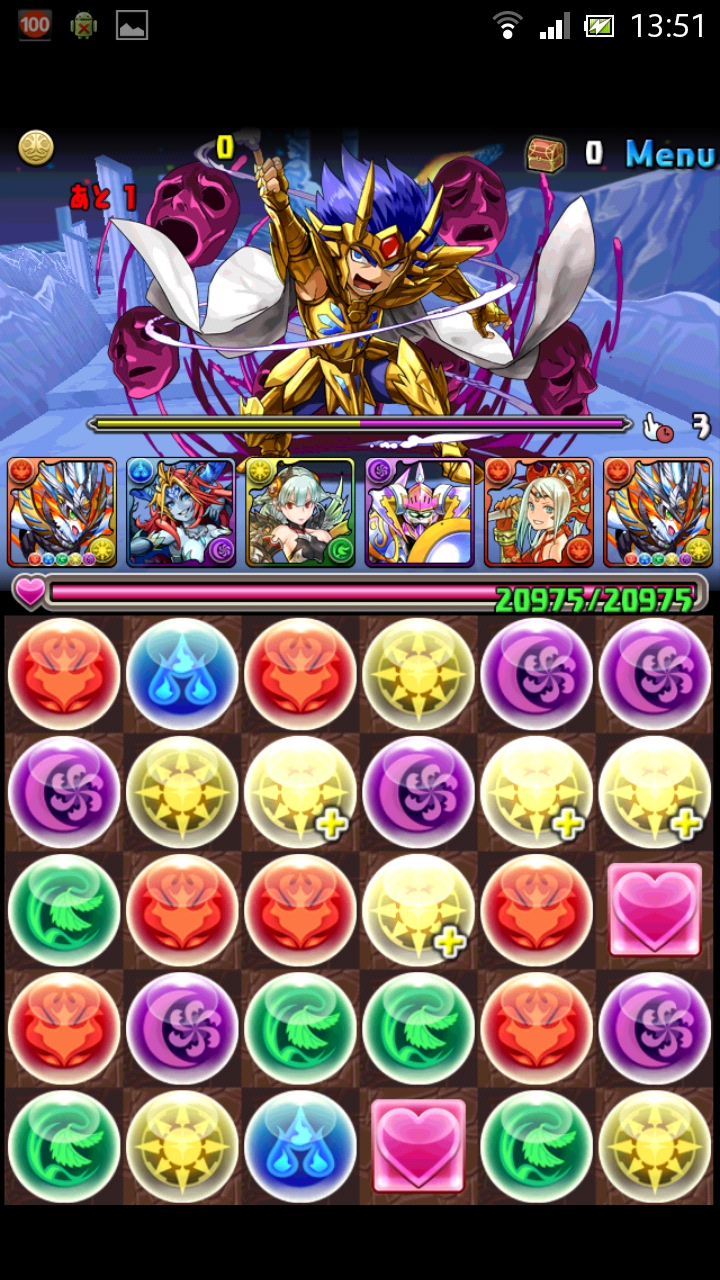 1階はアルデバランかデスマスクのどちらかが出現。どちらが出現しても先制で3ターンの間、ドロップ移動時間が1秒減ります。