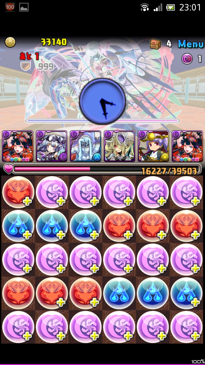 4階、光神龍です。HP約208万で、先制で3ターン闇属性攻撃吸収をしてきます。