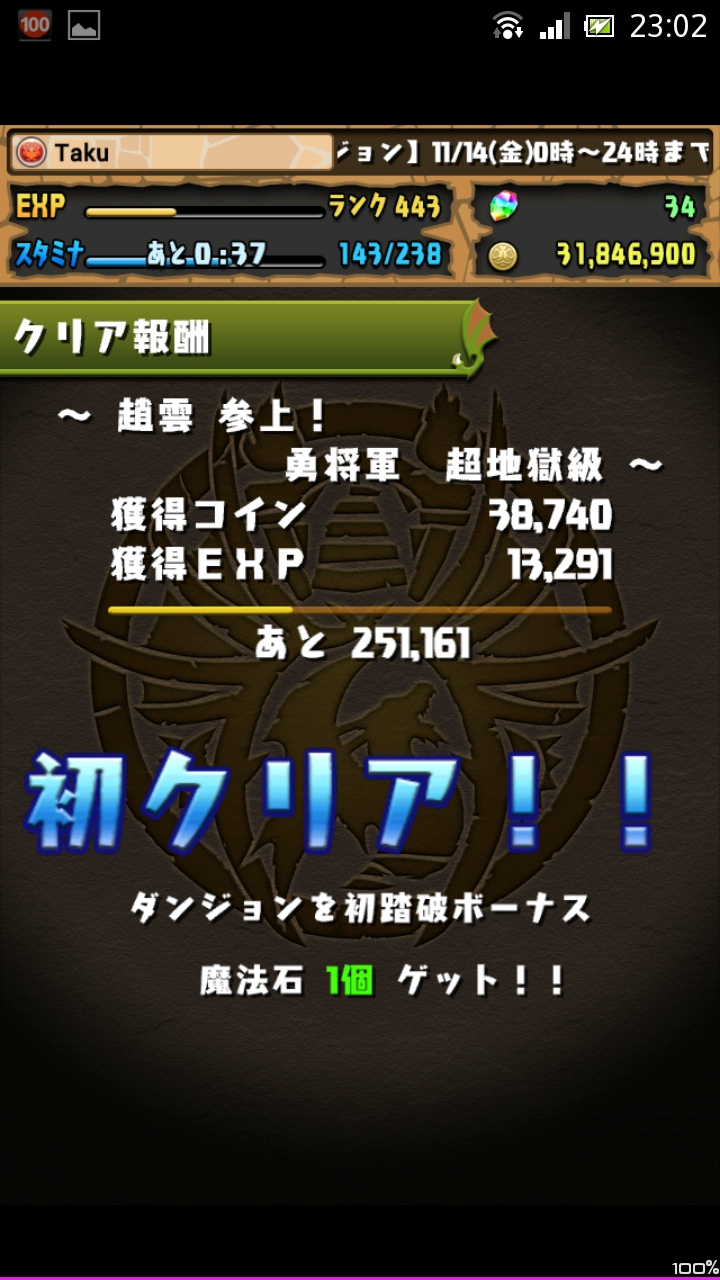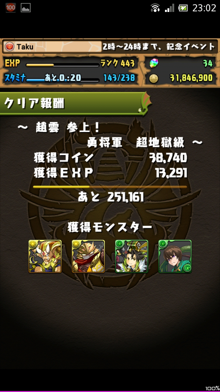 ということで無事に超地獄もクリアです。難易度は高いですが、しっかりと対策すればそこまで問題はないでしょう。地獄と超地獄の難易度の差はわりと大きいので、趙雲だけが欲しいなら地獄級を回るだけでいいと思います。