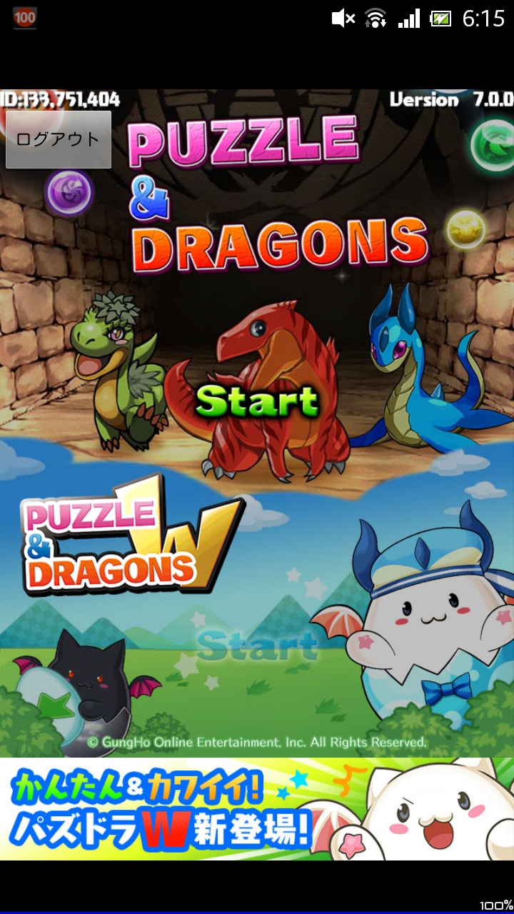 さて、左の画面が今まで見慣れていたパズドラの最初の画面。ですが、今回より下半分がパズドラWの画面に。上を押すと従来のパズドラが、下を押すとパズドラWが遊べる仕様となっています。