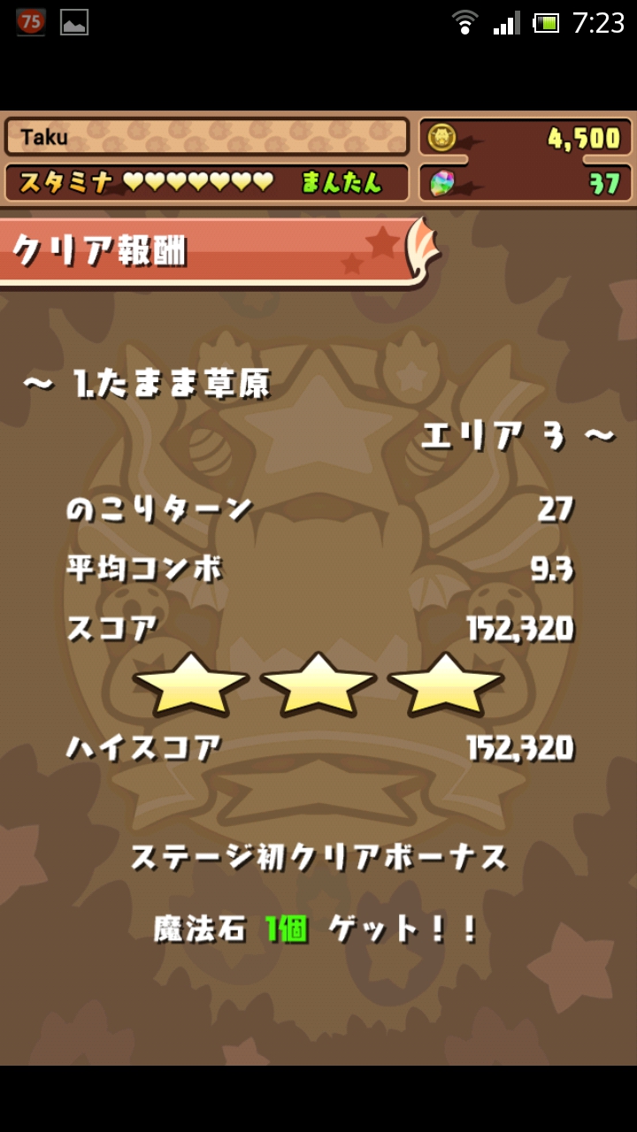 1ステージ毎に3つのエリアがあり、それを全てクリアするとそのステージはコンプリート。魔法石がもらえたりコインがもらえたりします。